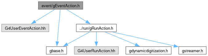 Declares GEventAction, responsible for per-event lifecycle hooks and event publication. More...