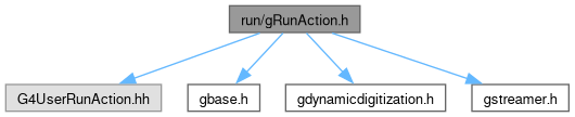 Declares GRunAction, responsible for run lifecycle hooks and run object creation. More...