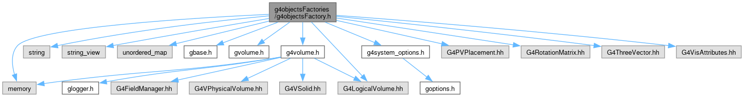 G4VSolid G4LogicalVolume (material + visualization)G4VPhysicalVolume (placement into mother) Definition in file g4objectsFactory.h.