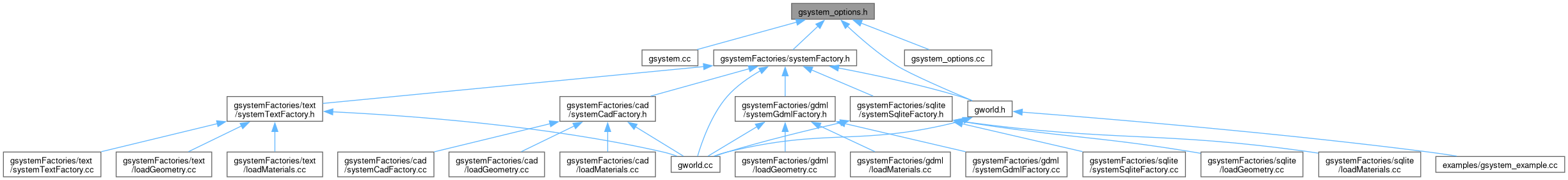 The gsystem module reads detector-system configuration from GOptions and provides: